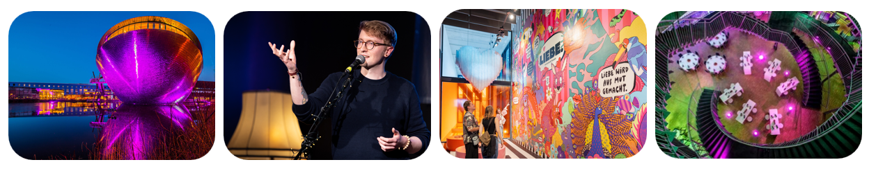 Der Abend beginnt mit einem Sektempfang und einer inspirierenden Kurzausstellung zum Thema Liebe – facettenreich, berührend und überraschend. Anschließend erwartet Sie eine kreative Poetry Slam Keynote mit dem preisgekrönten Matti Linke, die mit sprachlicher Finesse und emotionalem Tiefgang bewegt. Den Abschluss bildet ein vielfältiges Buffet im einzigartigen Ambiente des Universum® Bremen – ideal für anregende Gespräche und entspanntes Networking.
